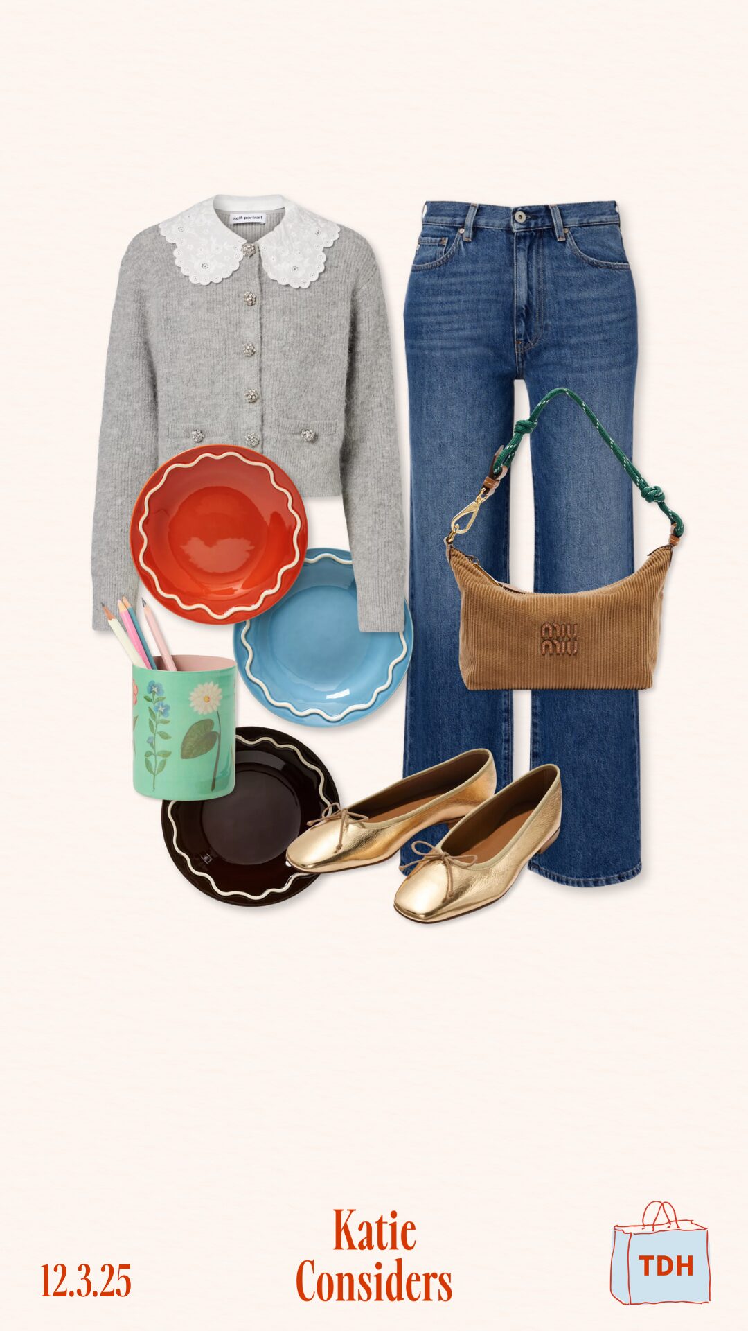 – Collage Quick Links: Cardigan / Jeans / Bag / Flats / Plates / Pencil Cup