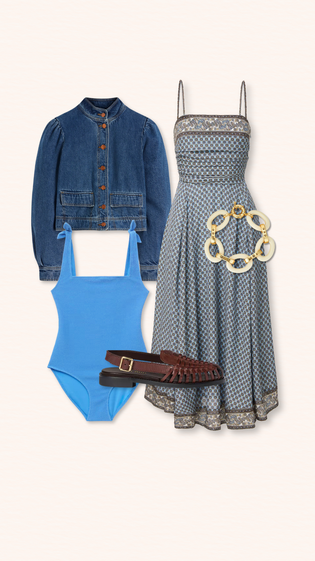 – Collage Quick Links: Denim Jacket / Dress / Bracelet / Sandals / Swimsuit