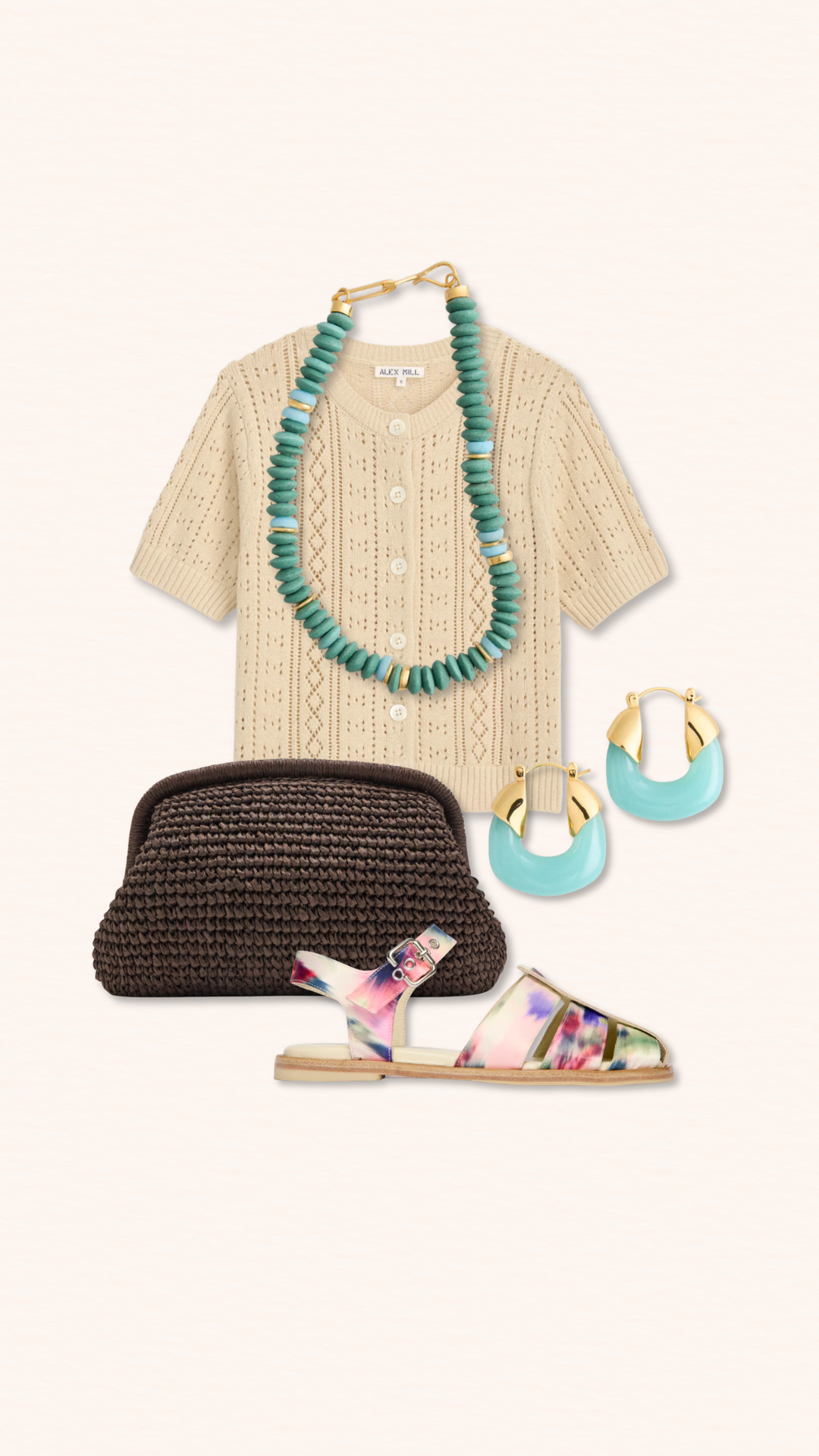 – Collage Quick Links: Cardigan / Necklace / Earrings / Sandals / Clutch