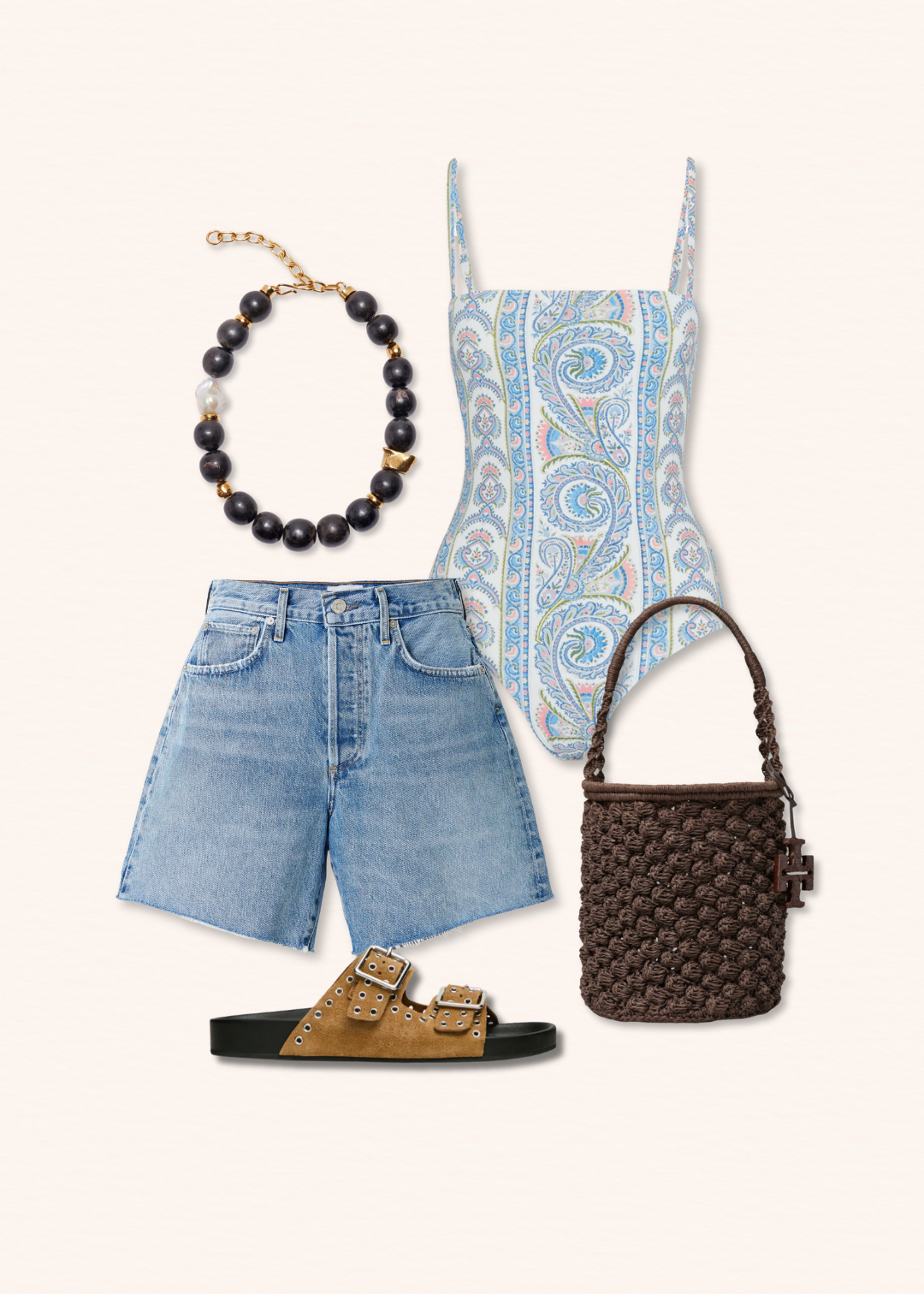 – Collage Quick Links: Necklace / Swimsuit / Bag / Sandals / Shorts